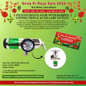 Lifesupport Oxygen Regulator with Barbed Connection & Auxillary Outlet