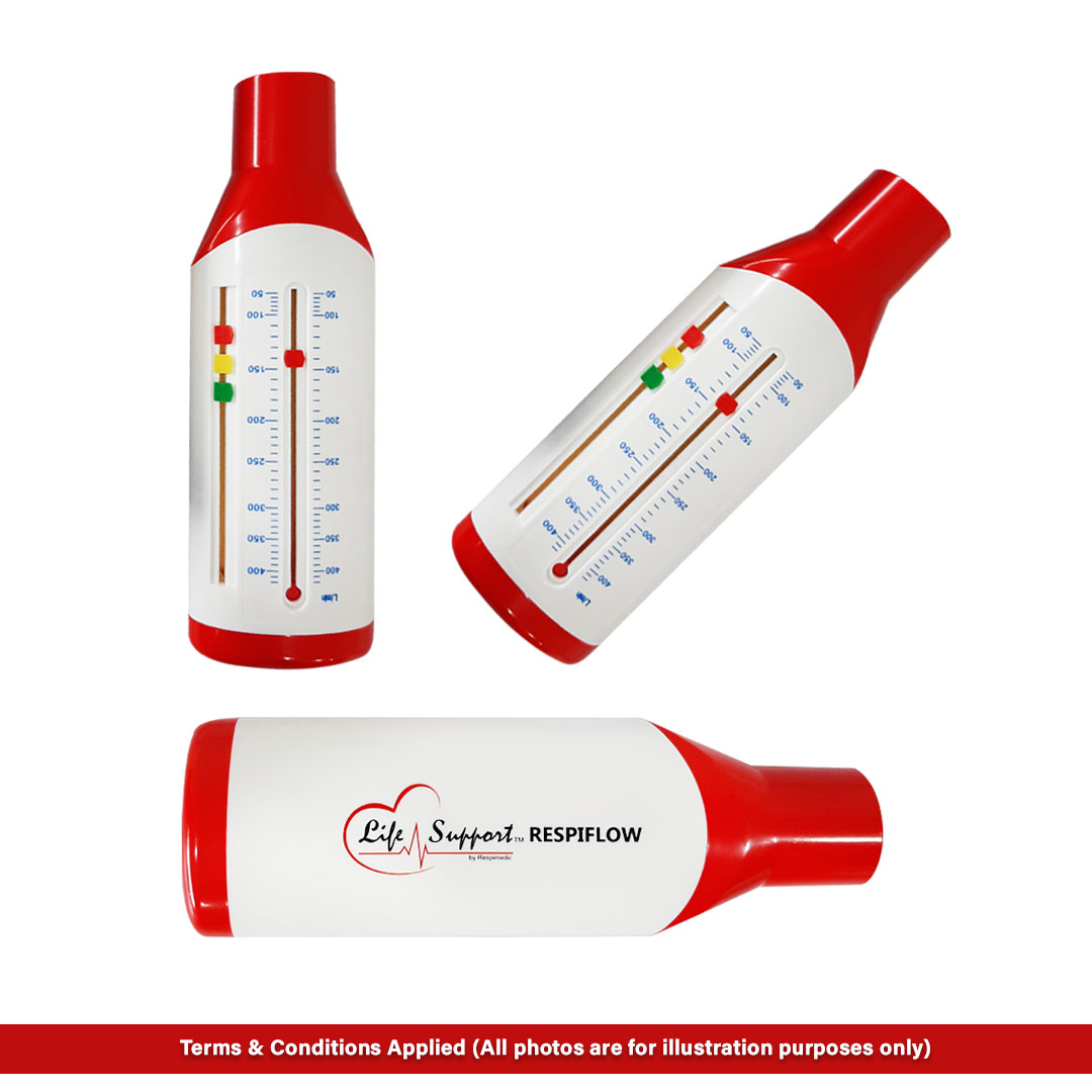 The Respiflow Peak Flow Meter is a cost-effective, portable, and lightweight device designed to help people with asthma manage their lung health. It measures how well air moves in and out of your lungs, providing essential data for asthma management.
